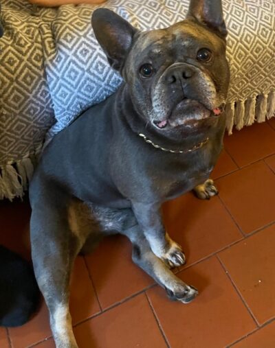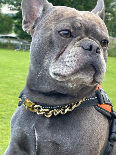 Bruce is a bigger sized French Bulldog. He has sadly become an anxious little dog in the home since a new baby has arrived and is not coping well. There are 2 other small children to consider too and so Bruce’s whole routine has been upset.