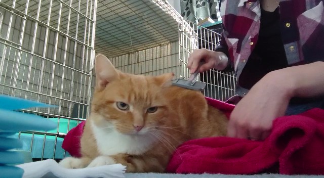 During his stay at the Cat Clinic he had to be handled each day to get the wounds treated, medication to be given and K Laser used to try to speed up the recovery. It was found that he had 2 infections in his wounds so antibiotics were prescribed. Handling was kept to a minimum to try to reduce his stress.