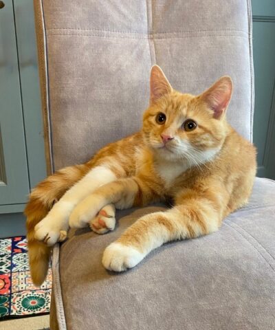 Kenny just loves to play with toys like springs, balls and string which involves lots of running which he loves. He also has a few favourite cuddly toys which he ‘fights’ and carries around.