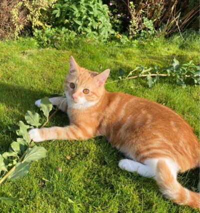 When he eventually settles down after all that playing he will purr sit on your knee and have a cuddle.
