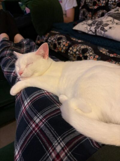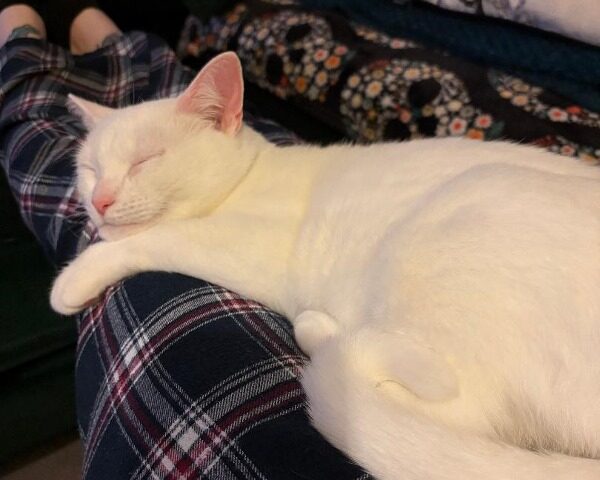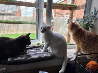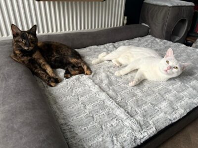 Maggie May was a stray cat that found refuge during the Summer Holidays in the main hall of a local high school together with her five kittens! Maggie May was initially very wary because she was protecting her kittens but eventually she and her little family arrived into our care. As you can see, Maggie May has well and truly settled into her new home