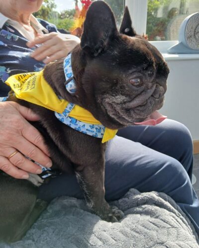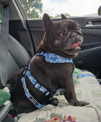 Her new home must be one where she won’t be left for long periods as she has been used to company most of the time. She needs a nice, secure garden to spend time in, an owner or owners who are active, can give her lots of love, nice short walks and take her most places with them. She walks lovely. Someone with experience of flat nose dog breeds and their needs, particularly in warm weather would be ideal. A very recently retired person or couple would be lovely for her. She is such a loving little dog and will be a really brilliant little companion. She loves travelling in the car with you.