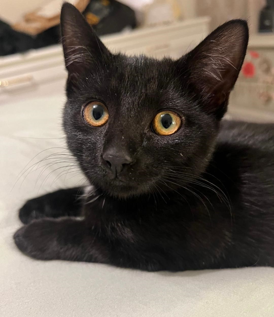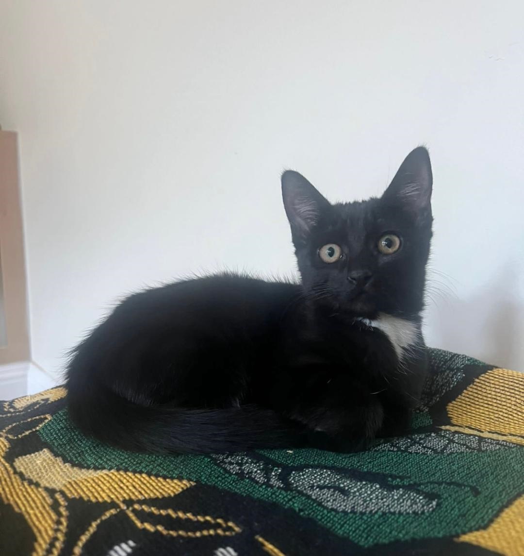 7th October 2024Sisters Ruby and Buttons (now Violet) and best friend Dylan were lucky enough to be adopted together by a young couple who love black cats. All 3 kittens settled into their new home very quickly and love play fighting, cuddles and all their new toys. The whole family have fallen in love with them.