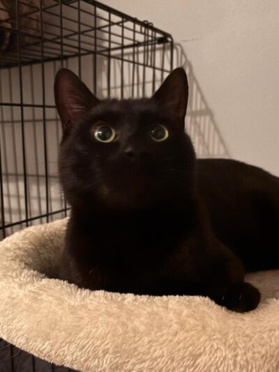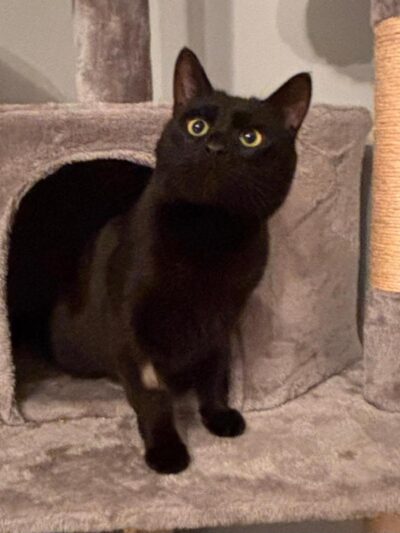 Sonny is a lovely big black cat. He came to us having been found as a stray living on handouts. Sonny enjoys his food, loves to play with toys and is hoping to find a home where he can have someone to cater for his every need as well as safe outdoor space for him to play in. He will love to chase leaves, climb trees and do all the things cats love to do. He is probably best in a home where he is the only pet so he can get all the attention.