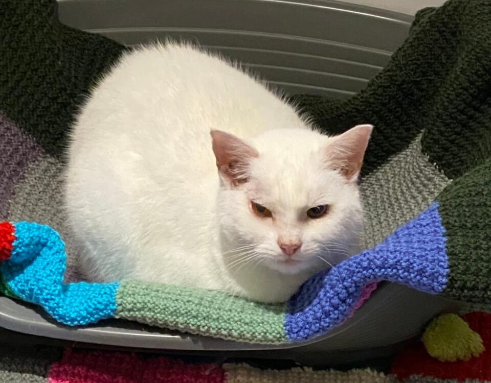 Tizzy (ginger and white) is a cautious little cat but once she has your trust she blossoms. She likes to play with toys and likes sitting on knees.
