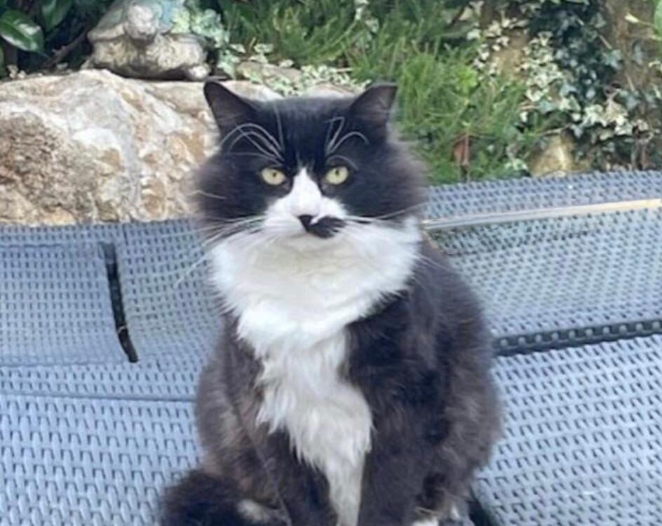 Tinker (long haired black and white) is a sweet boy who loves to cuddle and has a lovely soft purr. He enjoys playtime and is very gentle.